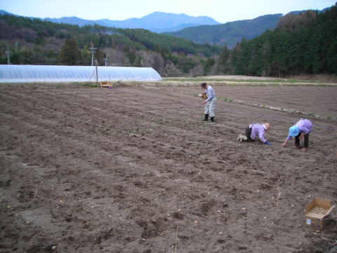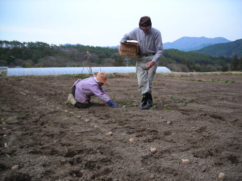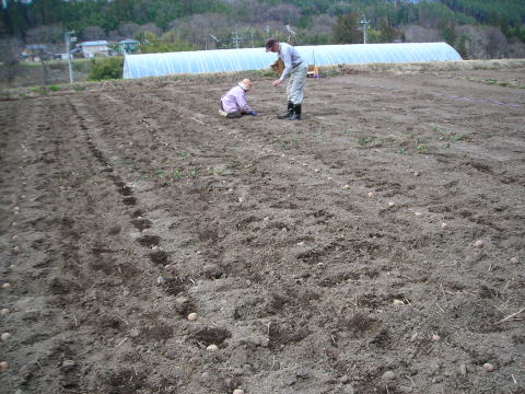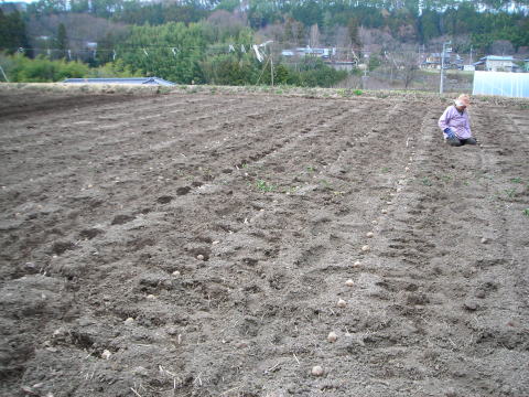 | 暖かくなってきたので、待ちに待ったジャガイモの植え付けをしました。 今年の植え付けは天候に恵まれてとても仕事が捗りました。 植えつけた種芋の量は約100kgです。 中には、カットした芋もあるので、植え付け株数はハッキリわかりません。 2箇所の圃場に植え付け、そのトータル面積は一反七畝になりました。 今年は、作業が例年より楽でした。 それは、4月3日の届いたばかりの“新車”「ヤンマー歩行型トラクター」MRT65UV」 通称「ポチ」が大活躍したからです。 畝たて、土かぶせを一度に行うことができるので作業内容と人間かかる負荷が、 激減しました。 収穫が楽しみです。 |