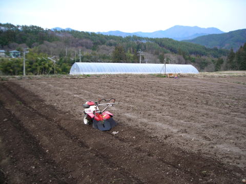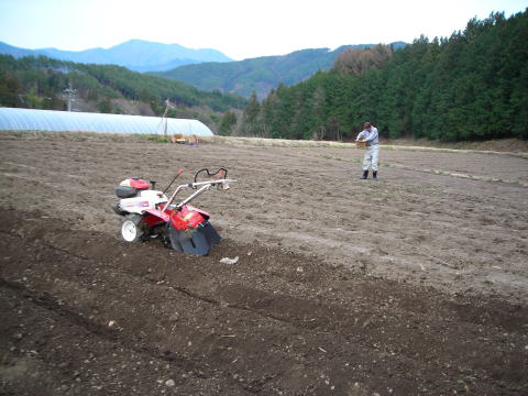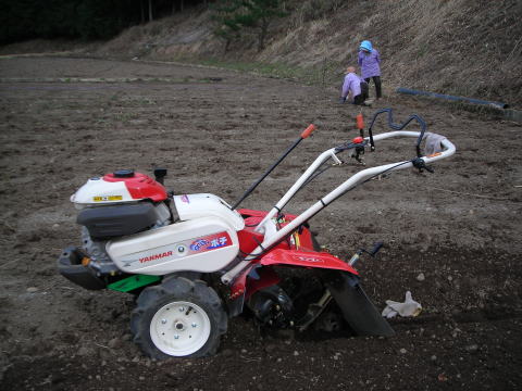 | 4月3日に届いたばかりなのに大活躍した歩行型トラクター「ポチ」 | |||